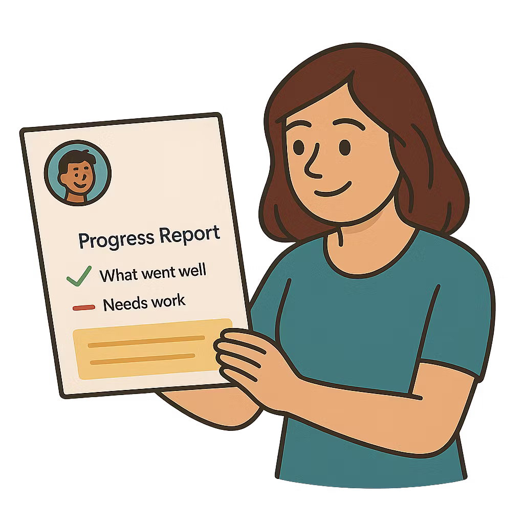 Every recorded lesson becomes a quick, visual summary parents can read in minutes, showing progress and next steps.